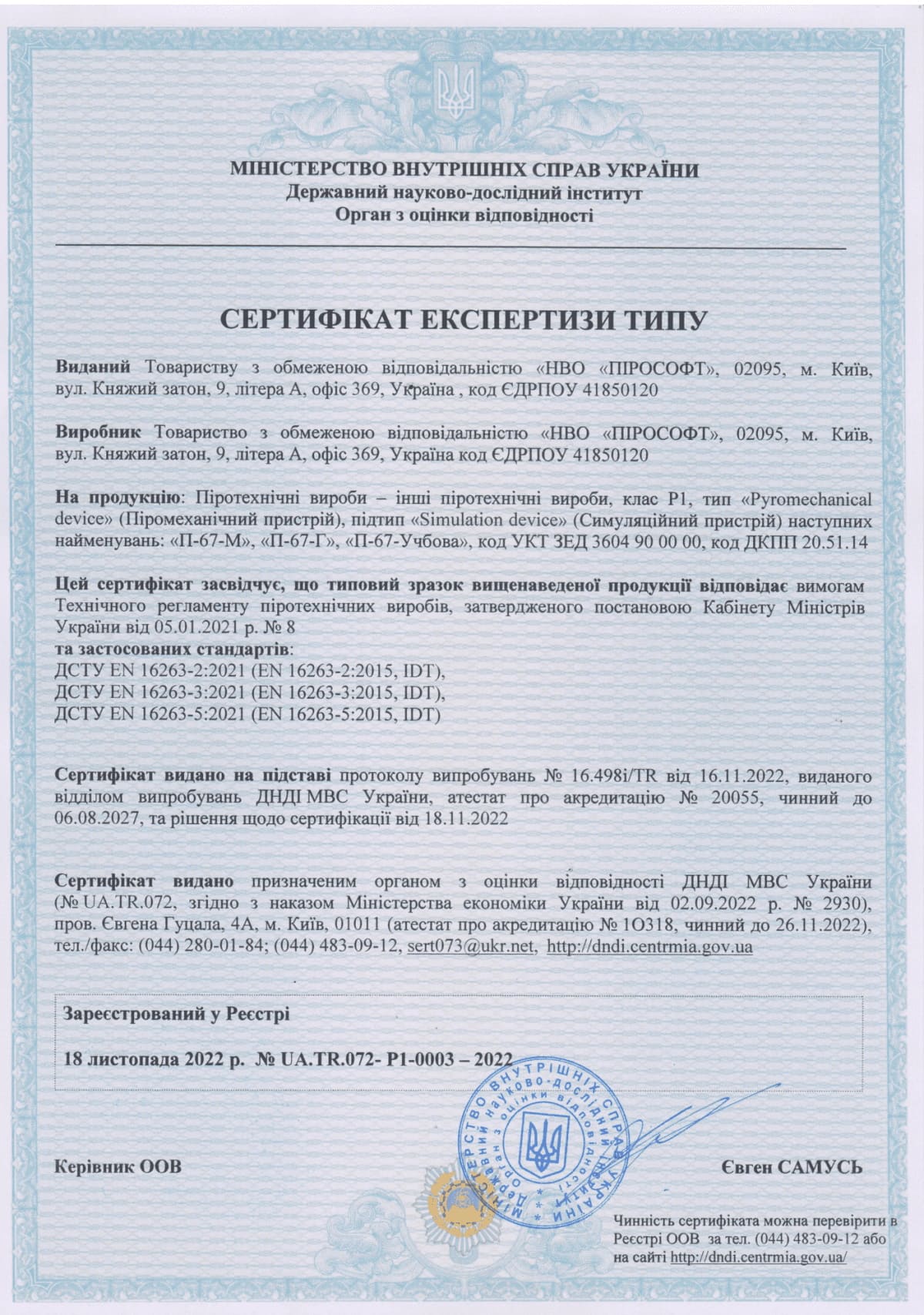 Імітаційно-тренувальні гранати, підствольні гранати, пускові системи, автономні гільзи.
