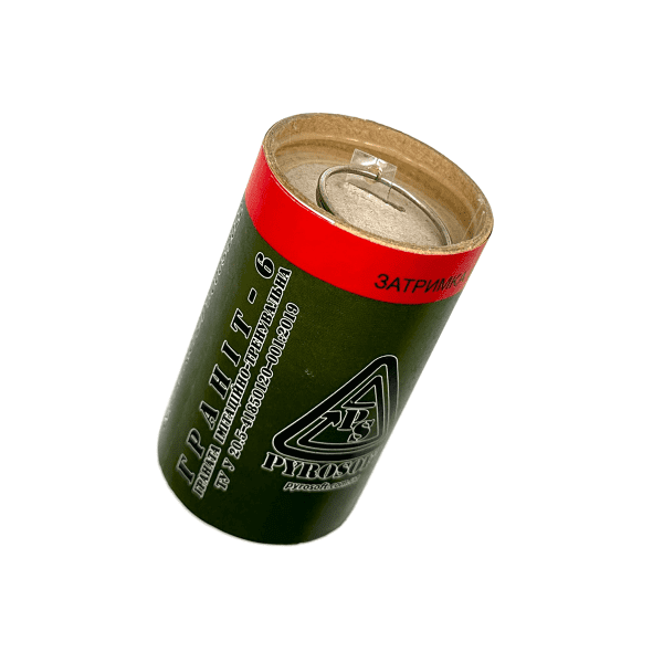 Страйкбольна граната ГРАНІТ-6 з кільцем ініціації для використання на ігрових полігонах зі страйкболу , пейнтболу або ж для тренувань. Більш потужніша та гучна ніж ГРАНІТ-4 завдяки використанню піросуміші масою у 2 грами. Корпус з картону з наповнювачем гороху який після вибуху піроелемента всередині розлітається на відстань до 15 метрів імітуючи уламки. Для ініціації потрібно різким рухом вгору висмикнути кільце, через 5 секунд відбудеться вибух піроелемента.
